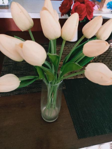 Plastic white tulips