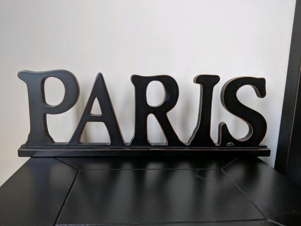 Black wooden words PARIS decor with distressed look 50cm wide X 16 cm high