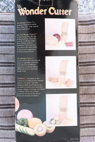 Wonder cutter used to slice dice and shred and many more. Never been used. Still in box with all pieces.