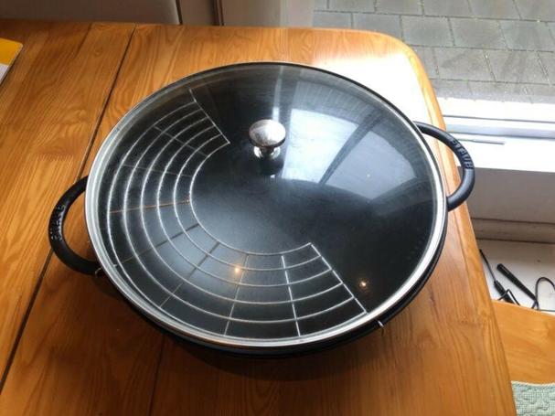It's brand new staub 37cm wok, which is never used. Original price is 329$.