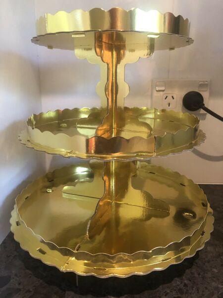 3 tier , gold colour cardboard cake tower , bought but never used , purchased for $15 , asking $10