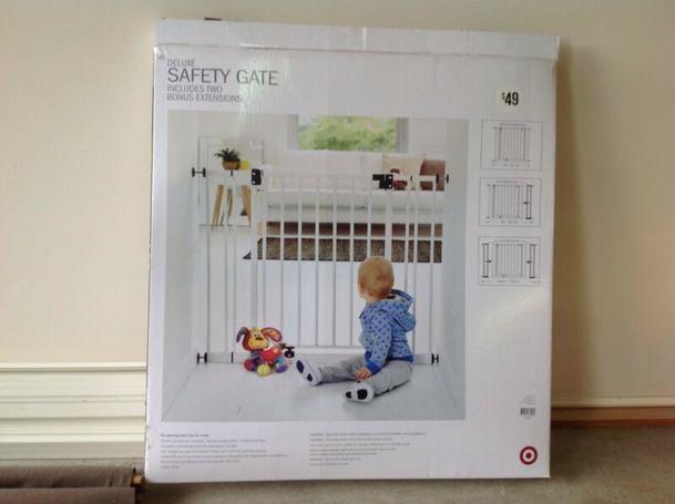 Box open but gate never used or assembled. New deluxe safety gate target brand.