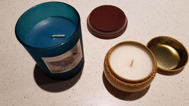 Brand new never used fruity candles. One blueberry (PureZone) the other peach (Ishka). Both smell great. $2 each.