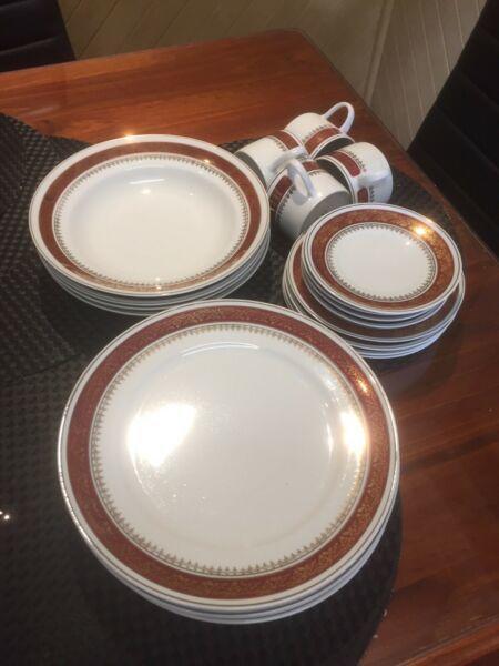 20 Piece Dinner Set White with Red Band 22 ct Gold Trim Very Good Condition no chips or cracks never used
