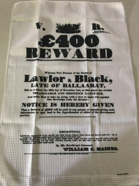 Printed in Ballarat. Brand new, never used Eureka Stockade tea towels. $20 for both or $15 for one. Pick up in Hawthorn, extra for postage