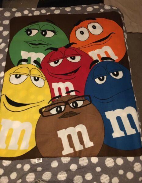 One brand new fleece throw blanket from M&M World in London. M&M characters on the blanket. Never been used.