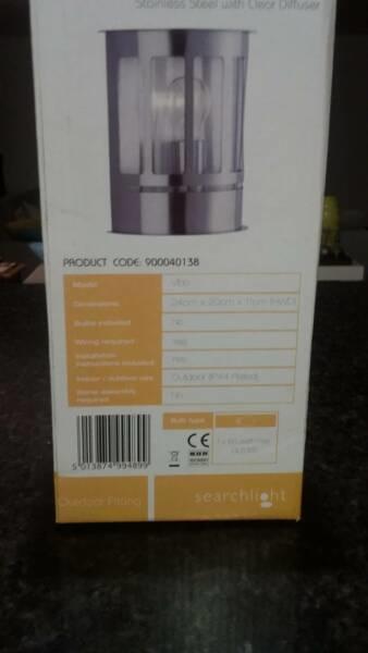 Vibo Stainless Steel Wall Lanterns x 5 with Clear Diffuser 24cm x 20cm x 11cm (HWD). Brand new. Never been used or taken out of boxes.