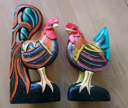 LARGE CHICKEN AND ROOSTER HANDCRAFTED WOODEN STATUES 0