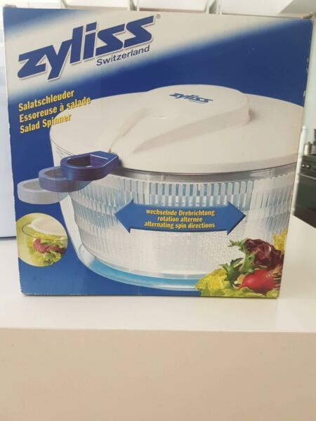 Swiss brand salad spinner with airtight lid in original box.