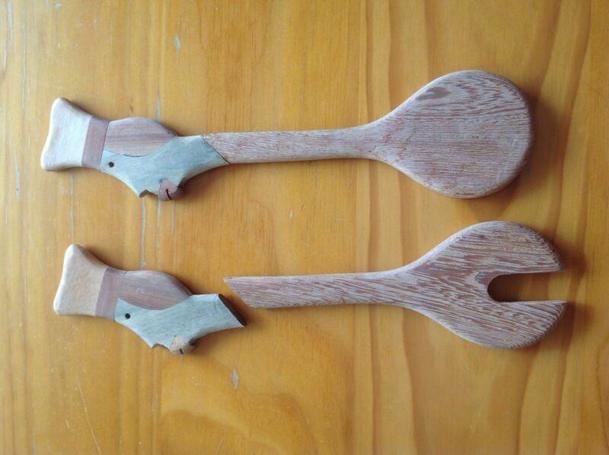 Wooden salad tongs, one broken (suspect easy glue job to fix), pick up heathmont