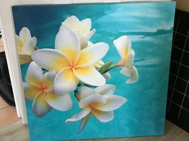 Frangipani canvas picture in perfect condition. W 76cm x H 76cm. $25. Pick up, Virginia