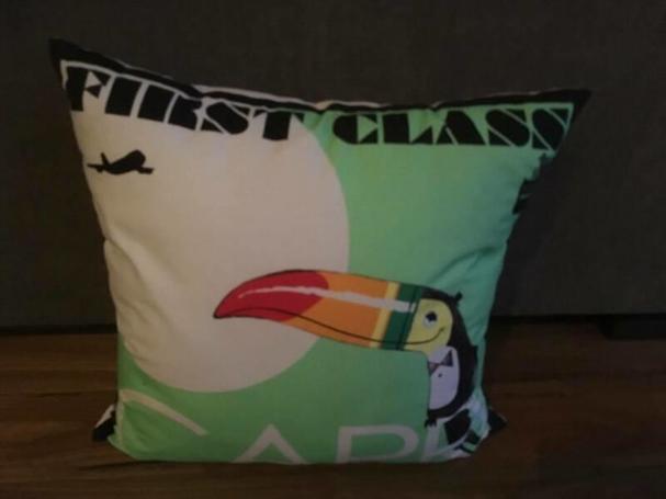 Cushion, Toucan design. Dimensions 45cm x 45cm. Picture on front, plain on back. Pick up only.