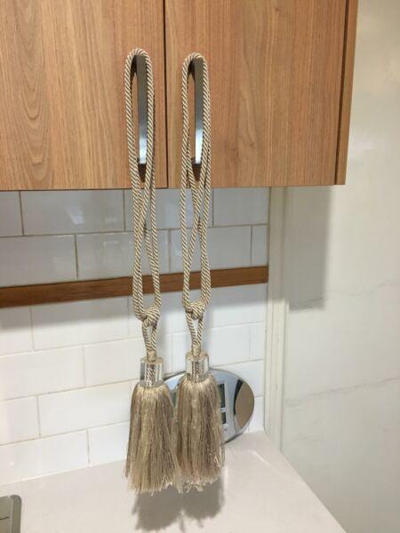 Lamp..mahogony base cream crochet shade with 2 matching cushion covers