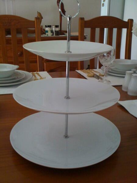 3 tier white cake stand. Brand Belle Amara. Pick up only