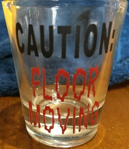 SHOT GLASS Caution Floor Moving