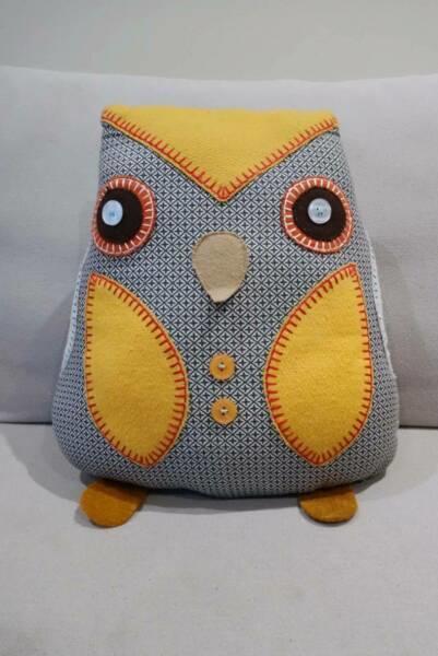 Character owl cushion in good condition. Features button eyes, felt nose, wings and feet. Pickup only