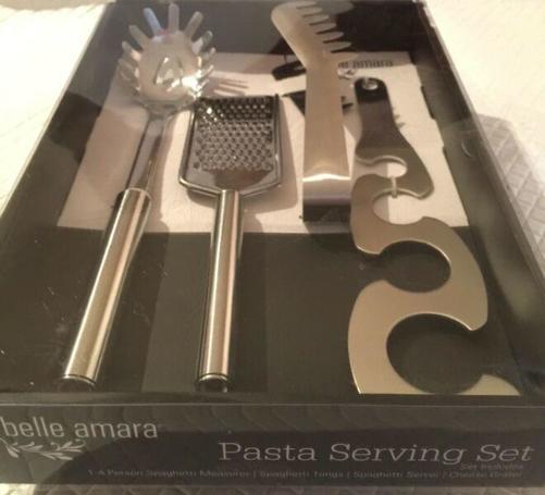 BNIB with tongs, grater, spaghetti measurer and pasta slotted spoon. Great starter kit